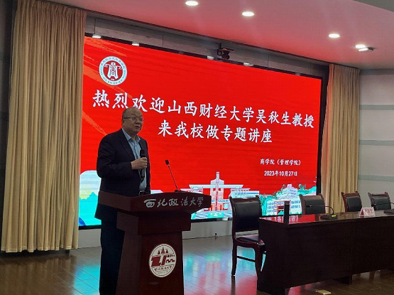 10月27日下午,我院特邀山西财经大学吴秋生教授做主题为“应用研究论文选题与撰写”的讲座,我校张荣刚副校长、学院李晓宁院长出席会议,李丹丹副教授、吴汉利博士作为与谈人发言,学院相关专业老师及研究生参与讲座学习。讲座由副院长杨柳青主持。